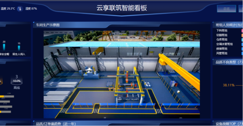 中科先進集成有限公司與中建三局第一建設安裝有限公司合作,運用工業(yè)機器人、多軸變工位機自動化設備、機器視覺、人機協(xié)作設備、AI算法等先進技術,建設全國首套機電管線自動化產線,集MES制造執(zhí)行系統(tǒng)、數(shù)字孿生工廠于一體,打造數(shù)字化智能生產管理云平臺。